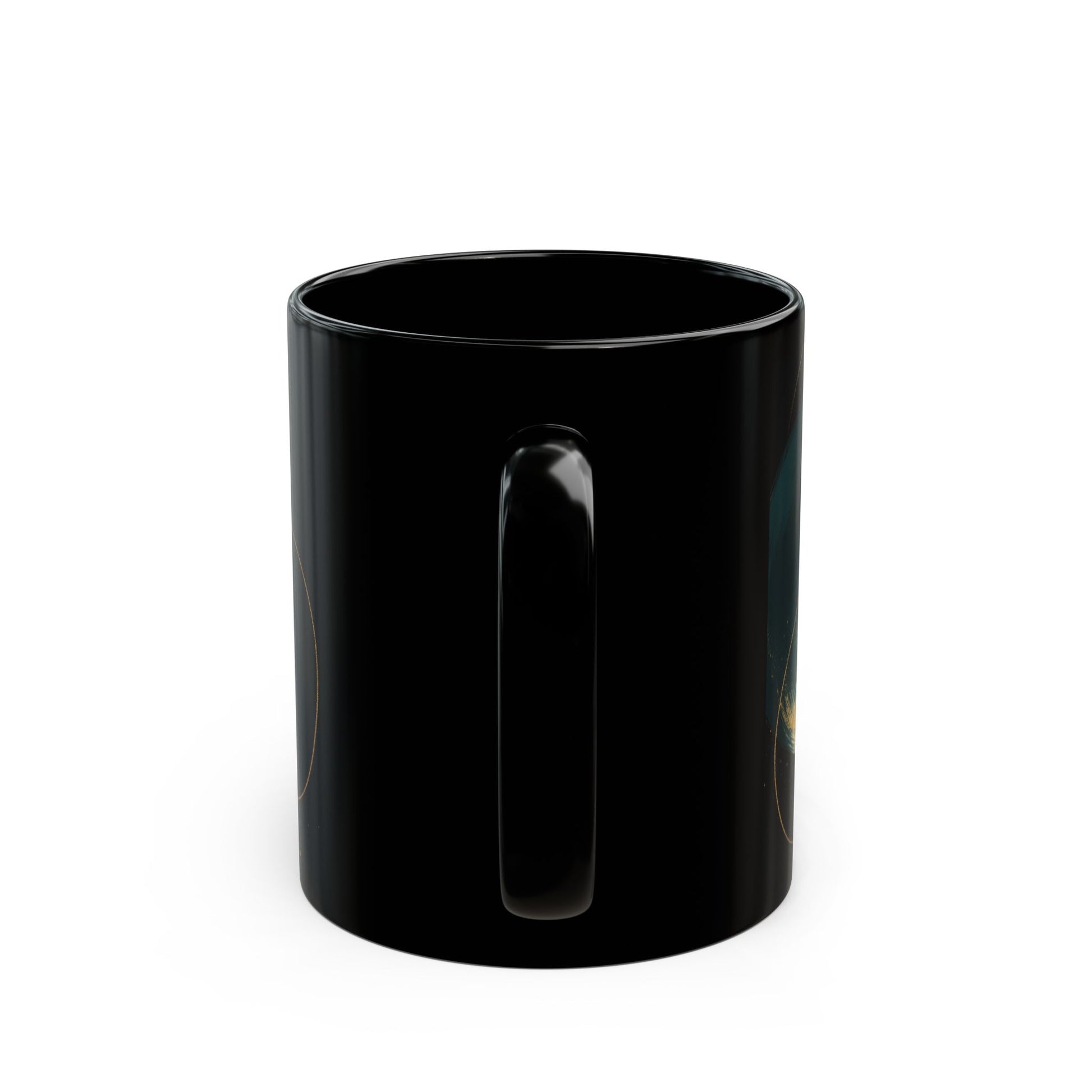 Abstract 2 -Soulful Collection-Teal Orbs Black Ceramic Mug — Modern Minimal Coffee Cup
